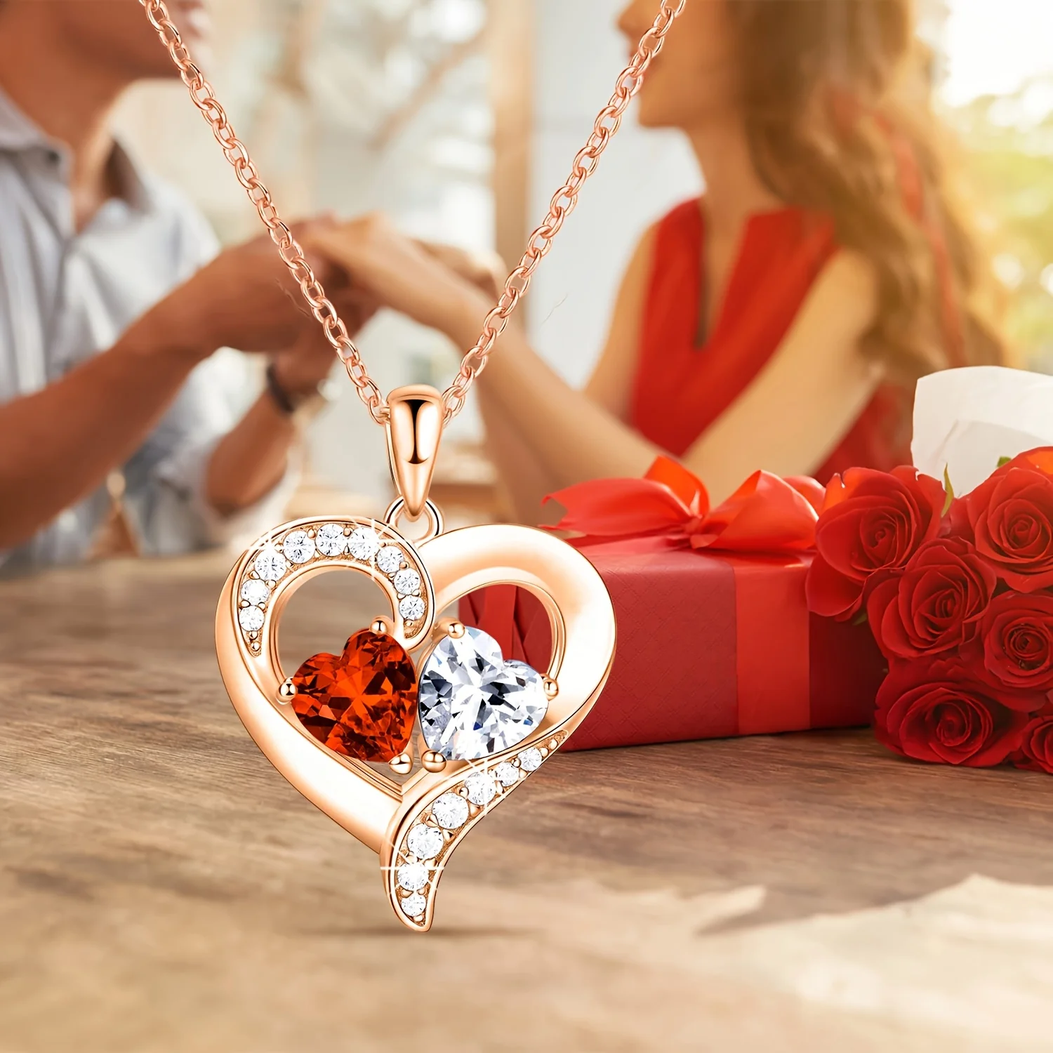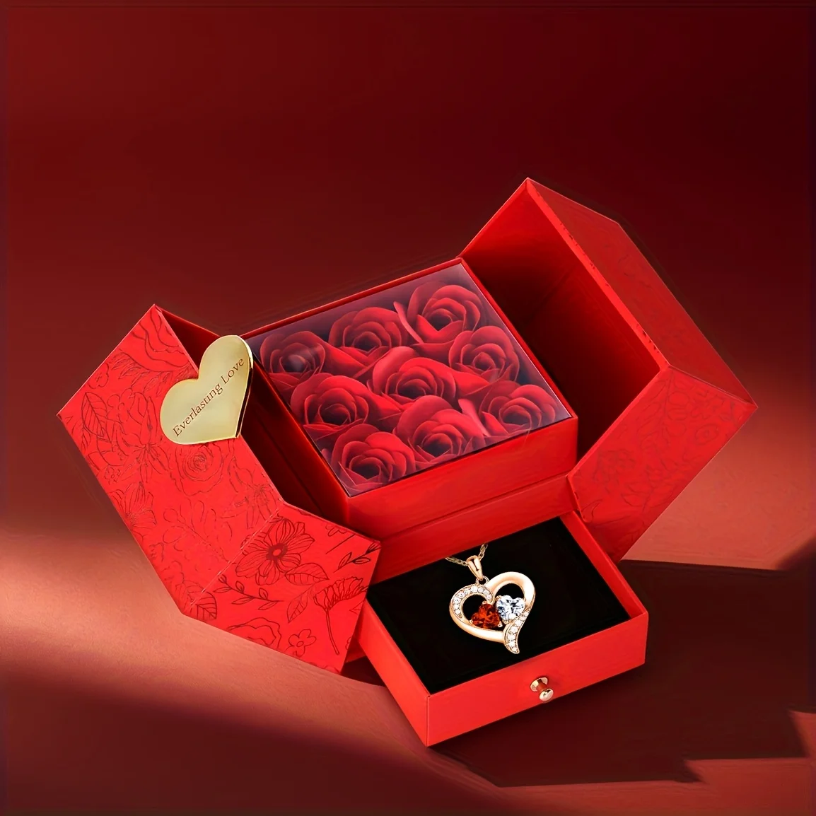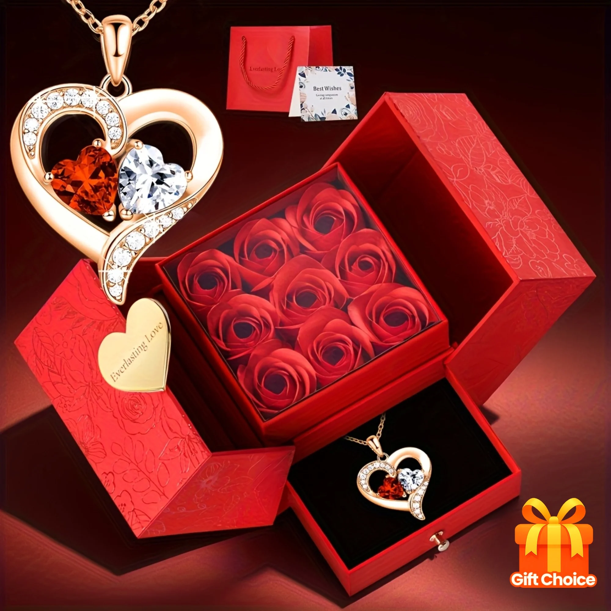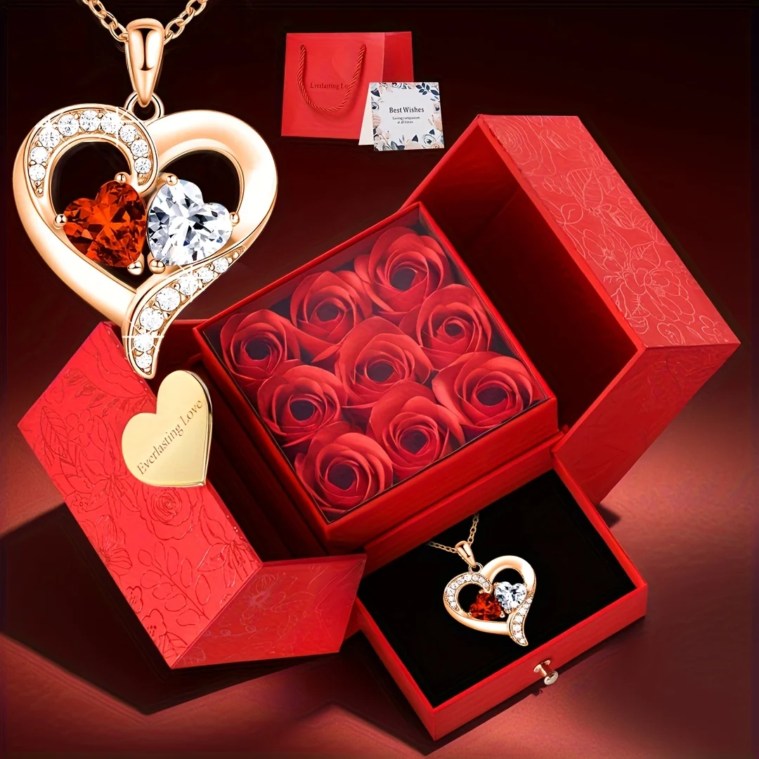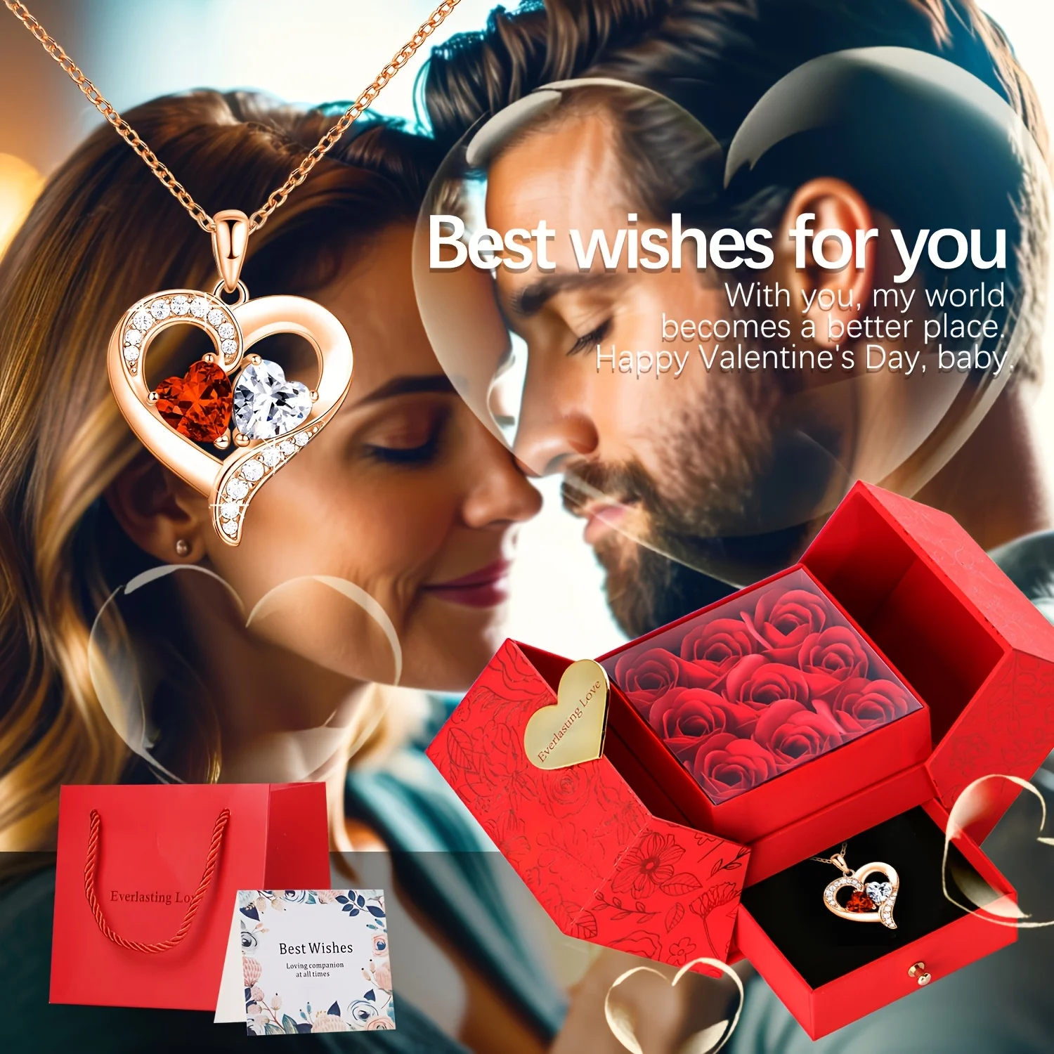 Romantic Heart Pendant Necklace with Rose Gift Box - for Women, Wife, Girlfriend, Mother ,Valentines Day & Mother’s Day Present